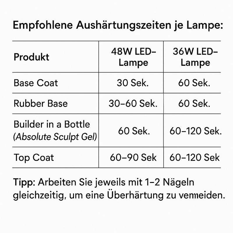 • Aushärten: 60–90 Sek (48W UV/LED)